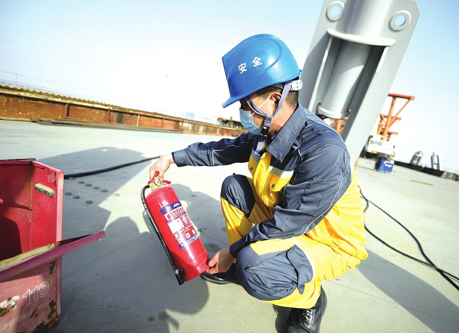 2月1日,济南齐鲁黄河大桥项目安全员郎玉辉在施工现场进行安全检查。据了解,为确保安全生产,济