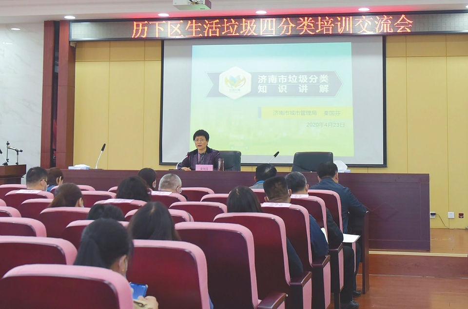 历下区召开生活垃圾分类示范社区创建工作推进会,来自全区各街道办事处、社区有关负责同志现场察看了东山雅郡小区垃圾分类工作,随后进行了集体培训交流。图为市城管局副局长秦国芬对济南市垃圾分类知识进行专业讲解。…[详细]