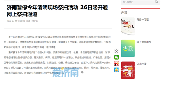 央媒关注!济南 “云祭祀”开启文明祭扫新风尚