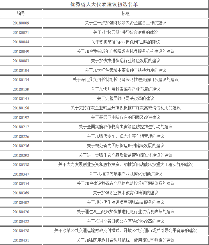 山东省人大公示首批优秀省人大代表建议和先进承办单位初选名单