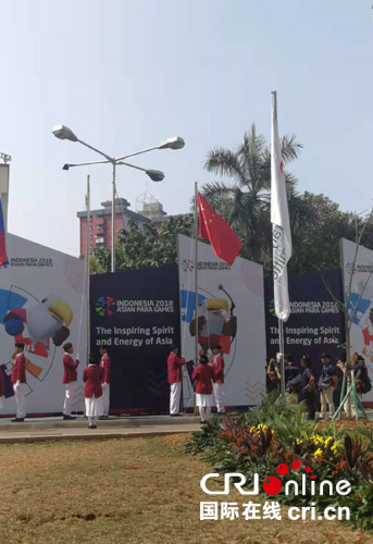 国际在线消息(中国国际广播电台记者 王洹星):亚洲残疾人运动会将于10月6日至13日在印度尼西亚首都雅加达举行。4日,中国体育代表团在雅加达举行升旗仪式。伴随着《义勇军进行曲》,五星红旗在位于雅加达的亚残运村冉冉升起。
