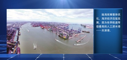 大屏幕展示的是区域协调发展“四大板块”格局、国家级新区建设、海洋经济发展等方面的突出成就。