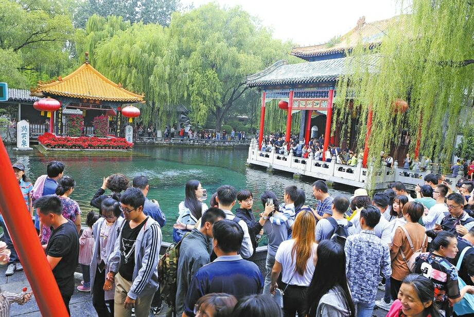 国庆、中秋假期第二天,客流量较首日大幅提升,迎来首波客流高峰。市内景区景点,传统的三大名胜和方特东方神画、九顶塔民族风情园、济南野生动物世界等线路受到游客青睐。