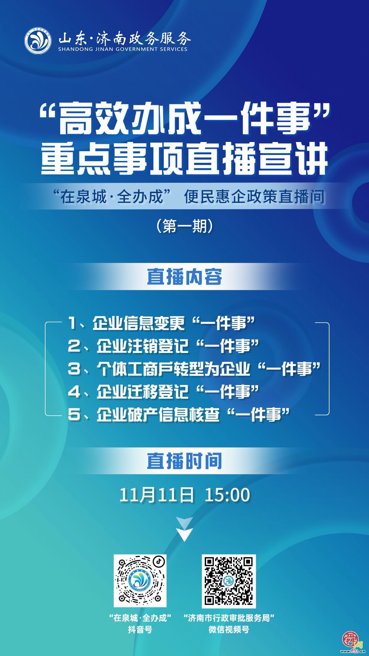 直播预告丨11月11日15:00  “高效办成一件事”重点事项直播宣讲(第一期)
