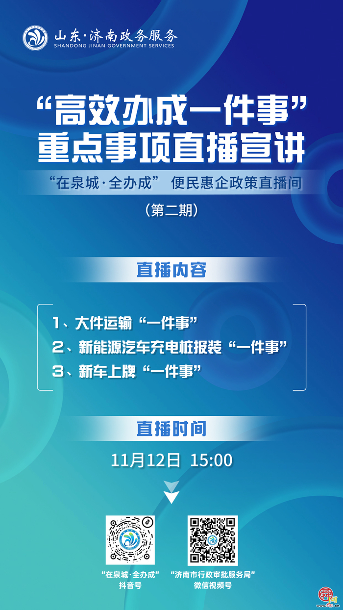 直播预告丨11月12日15:00  “高效办成一件事”重点事项直播宣讲(第二期)