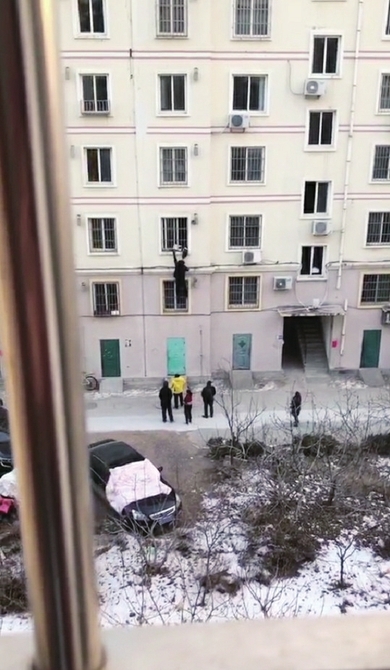 3岁娃悬空卡窗外 济南防疫人员徒手爬楼救人摔伤