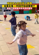 萌娃开心的在街上跳舞,一时间不知道看哪个
