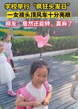 学校举行“疯狂头发日”,一女孩头顶风车,赢麻了