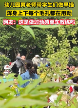 幼儿园男老师带学生们做早操,浑身上下每个毛孔都在用劲